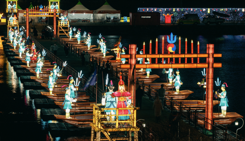 - 유등 퍼레이드: 남강 위를 수놓는 다양한 테마의 대형 유등, 전통·창작 소망등 퍼포먼스.